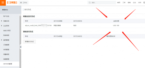 打开费用中心即可看到阿里云额度支付方式(分销商充的余额),充值后在阿里云网站随便买就可以了。