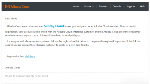 一、联系阿里云国际站渠道分销商SunthyCloud给您发账号注册邀请链接